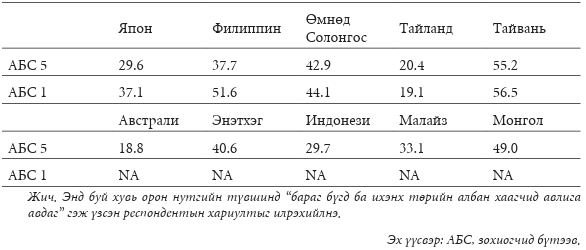 Хүснэгт 10.1 Азийн ардчилсан улсууд дахь үндэсний түвшний улс төрийн авлига